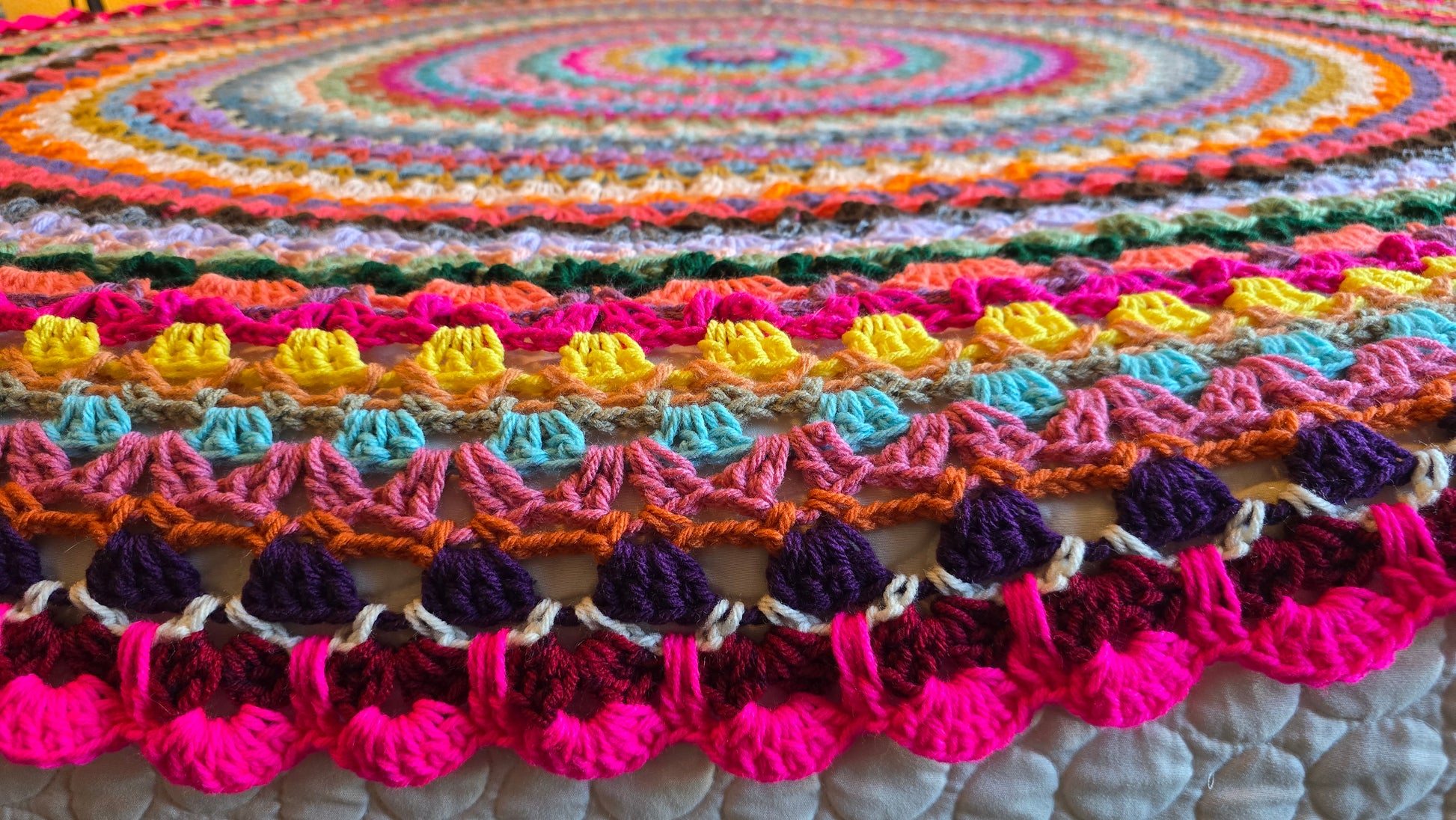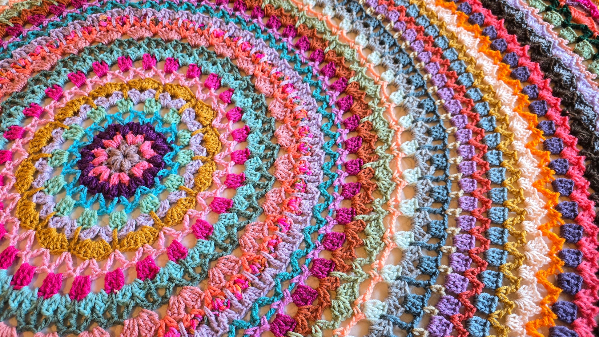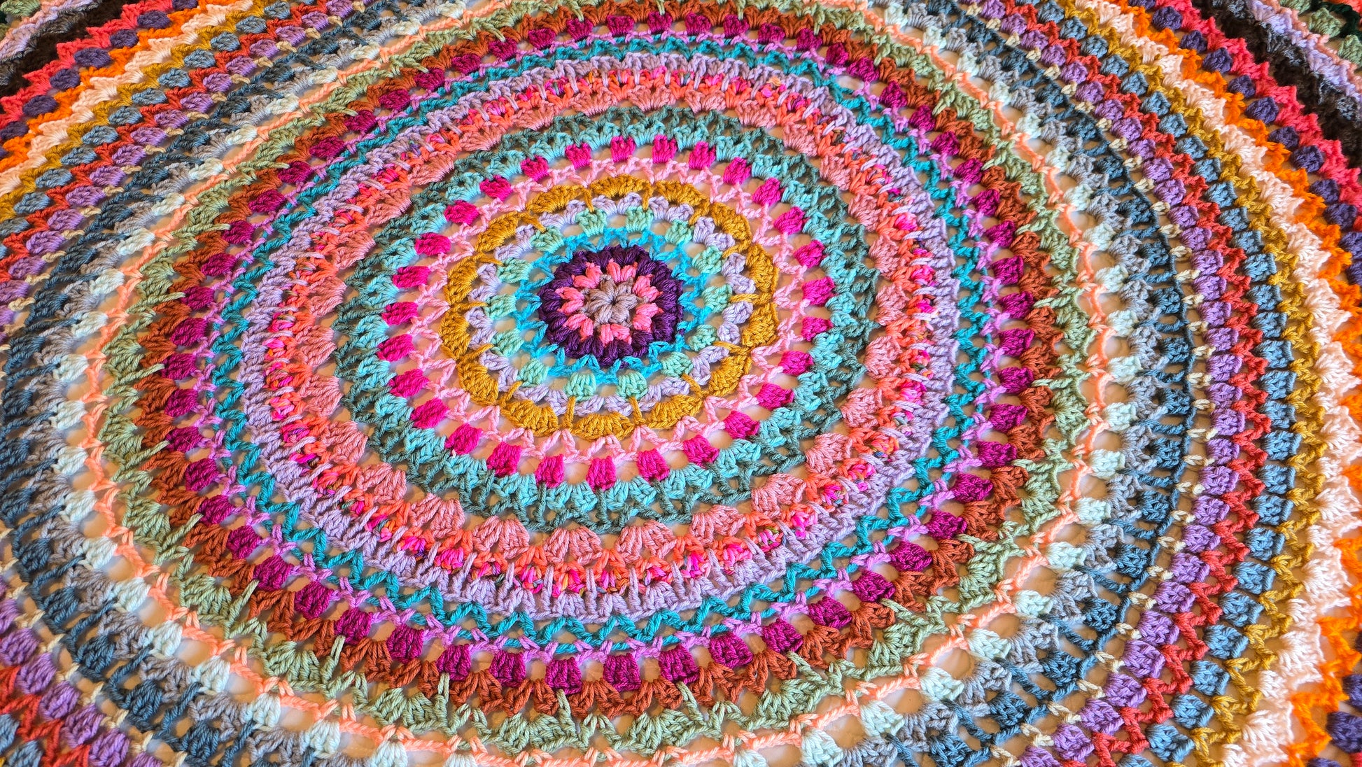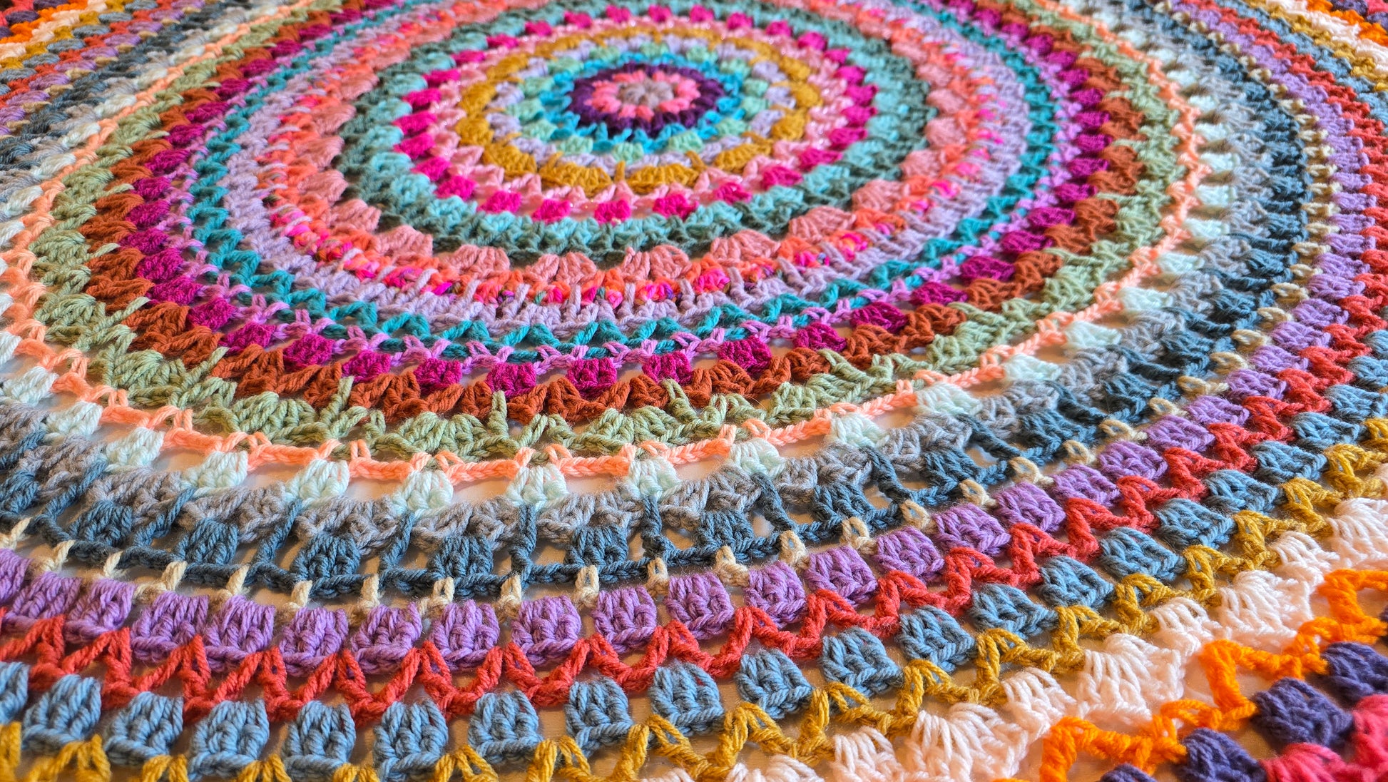 Easy written crochet pattern that anyone can follow using basic crochet stitches in US standard crochet terms! This pattern shows you how to create a striped circle crochet blanket, easily made to the size you want! Also can be made in any color(s) you want. All of my patterns can be made with different sized yarn, you would just need to match your yarn size and hook size to adjust. If you have any questions about this pattern, please contact me!
