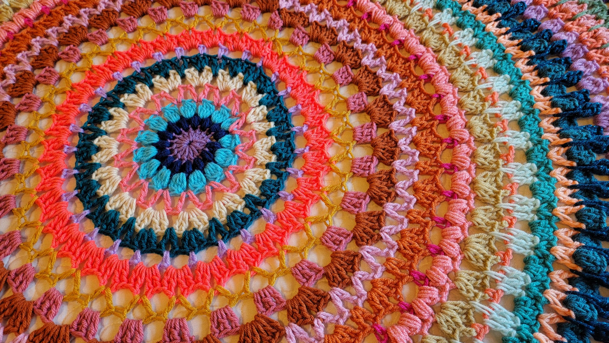 This is my Hot Shot Afghan! A gorgeous lace circle afghan in bright colors. 100% handmade and wonderful to cuddle up with! A handmade crochet blanket is a beautiful way to add texture and warmth to any room. My blankets are all made with gorgeous, colorful yarn that is soft and squishy. It will be a real statement piece in your home.