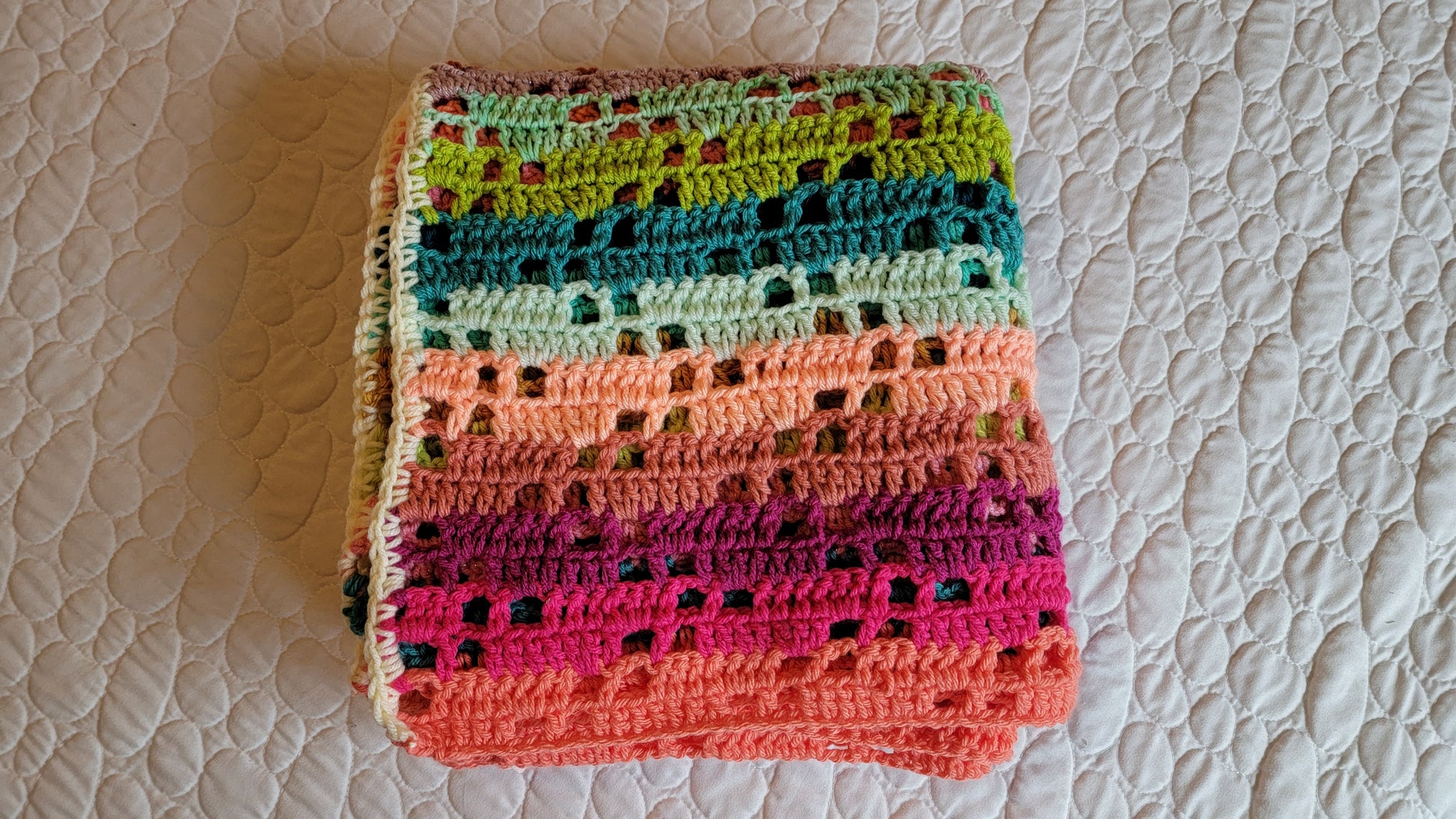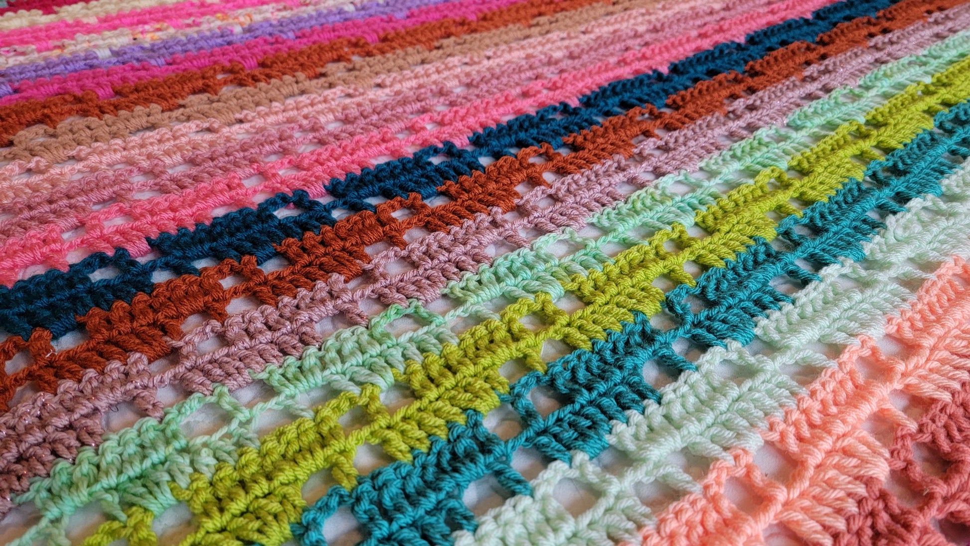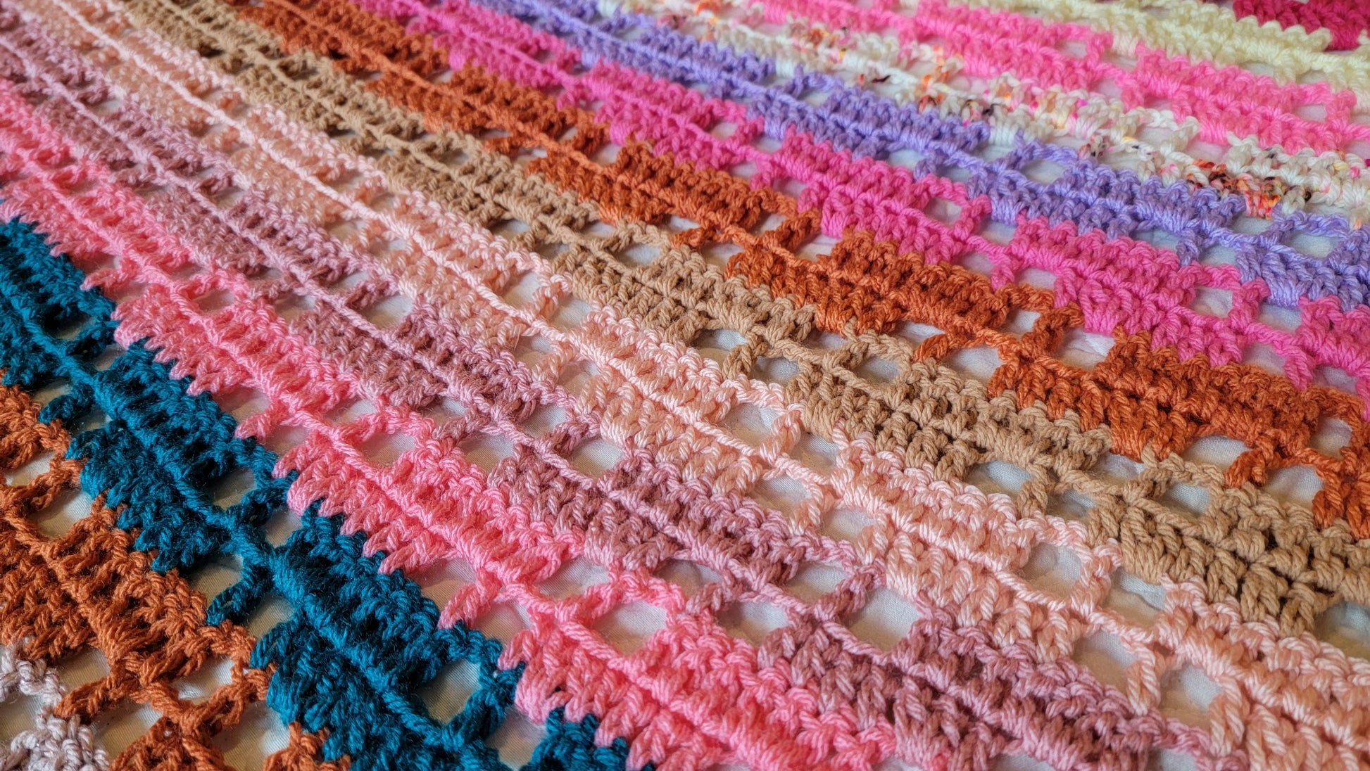 This is my Shimmer Spirit Afghan! A vibrant pop of color afghan in a gorgeous lace pattern! A handmade crochet blanket is a beautiful way to add texture and warmth to any room. My blankets are all made with gorgeous, colorful yarn that is soft and squishy. It will be a real statement piece in your home.