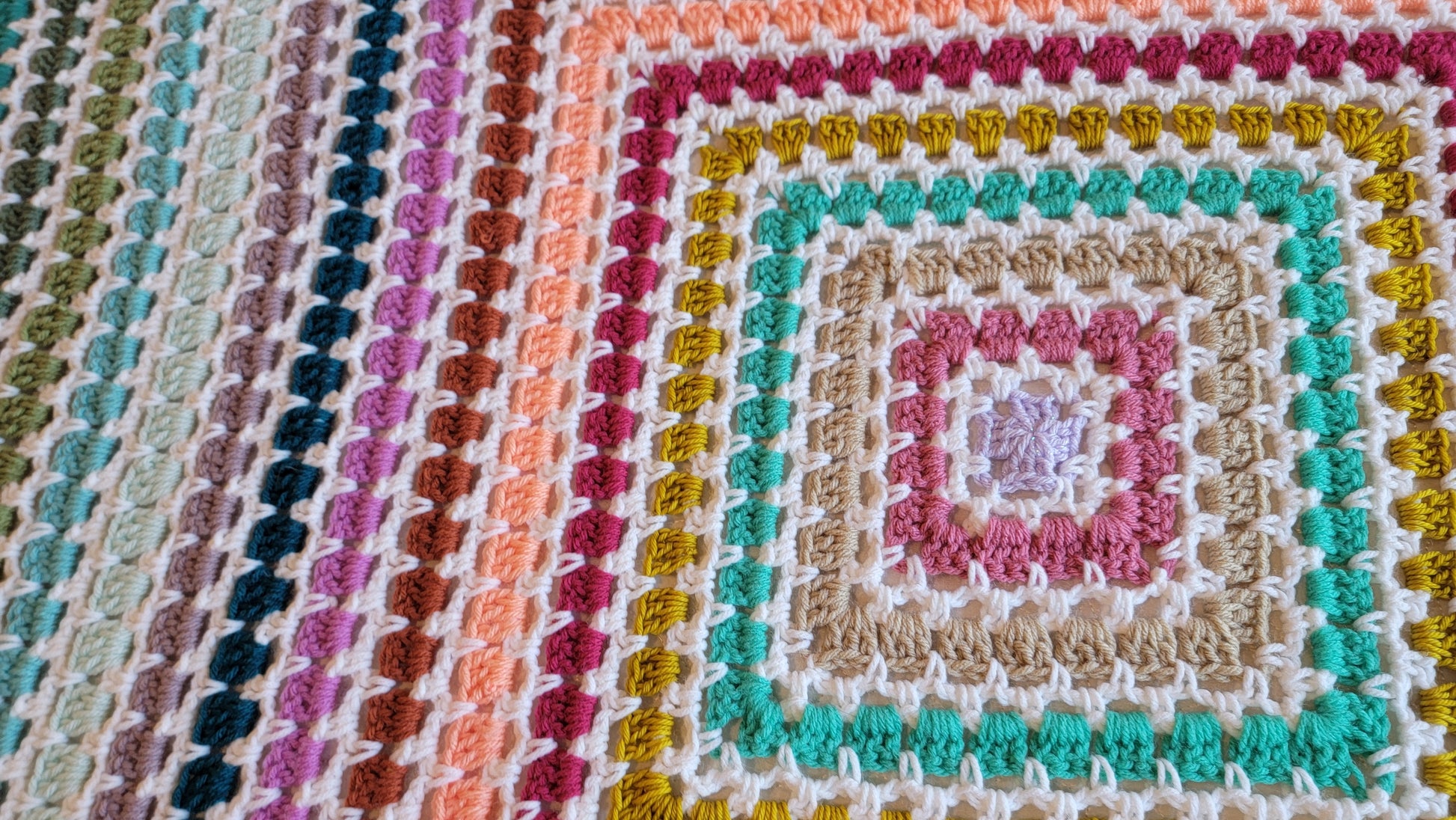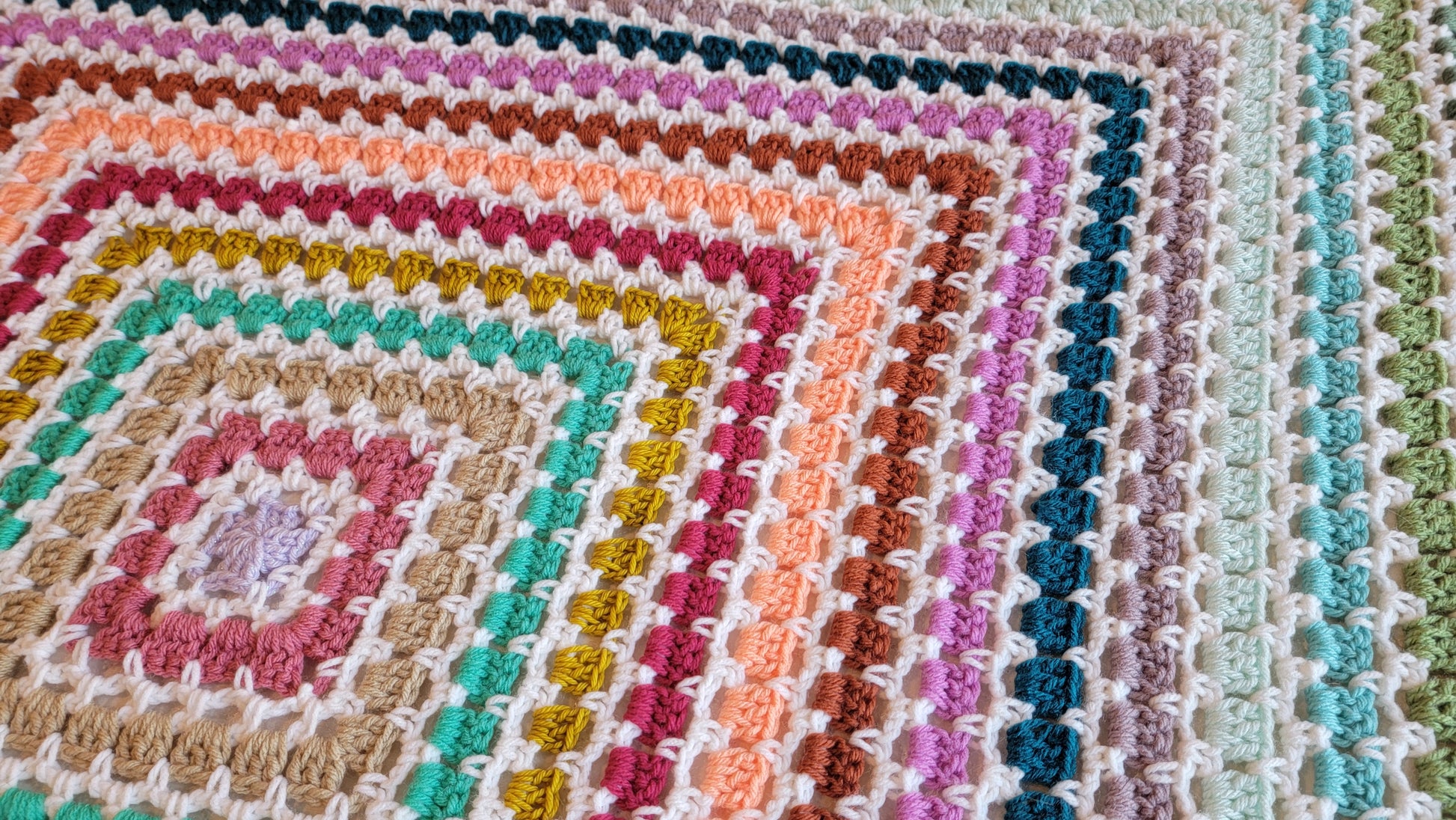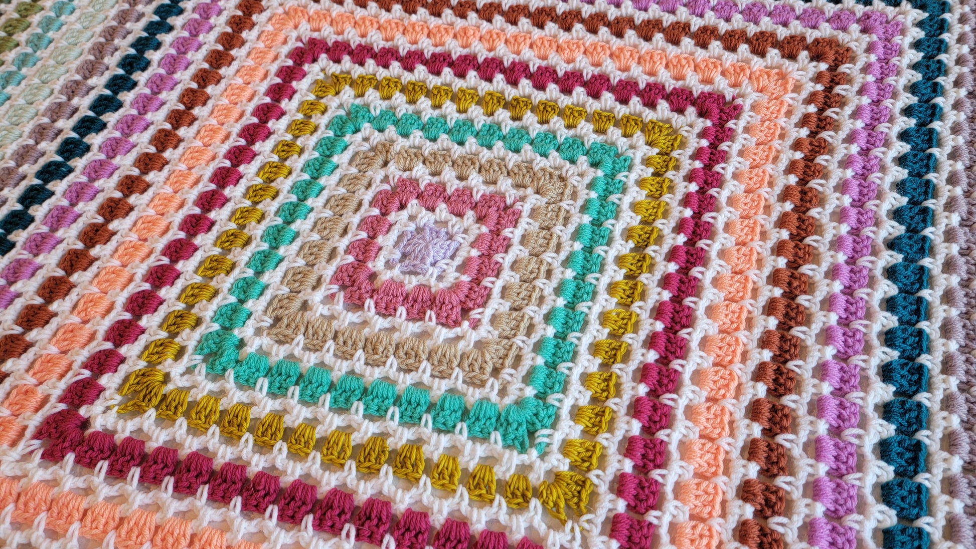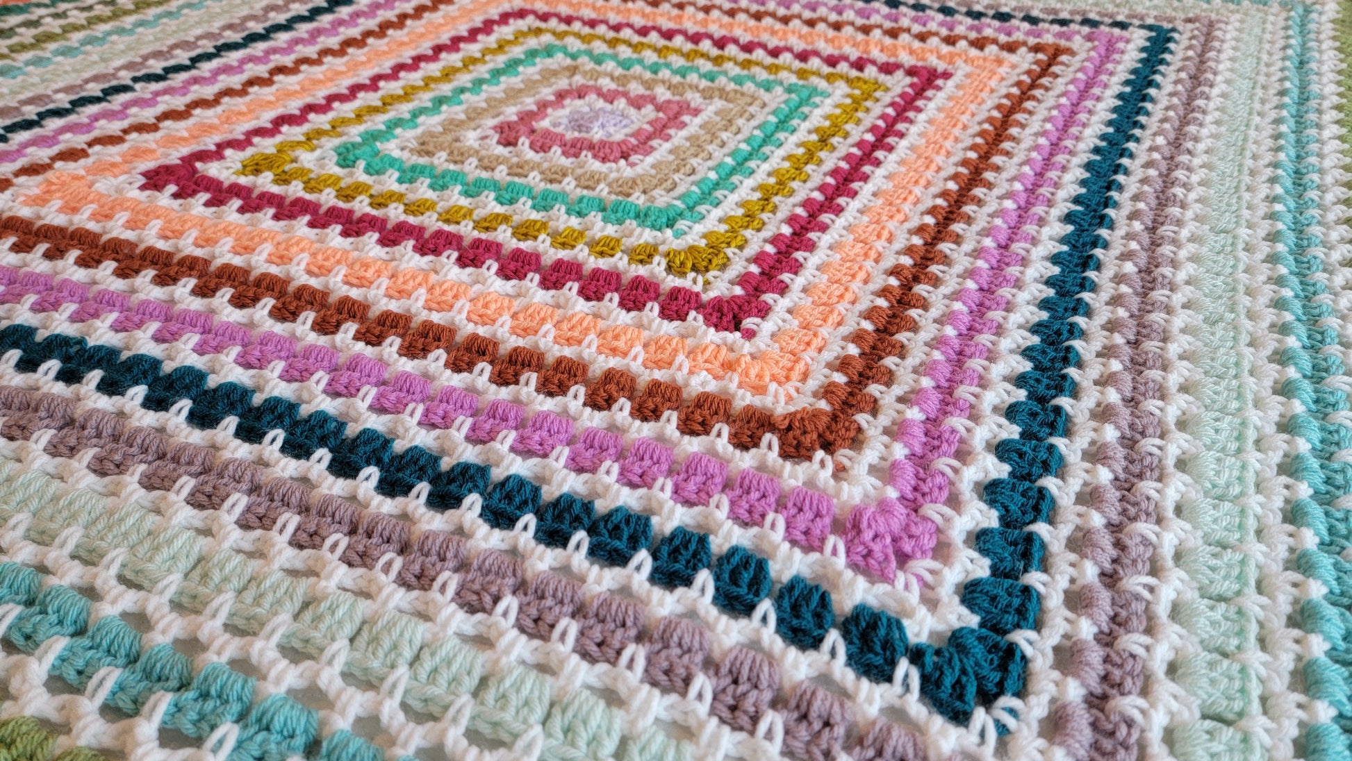 This is my Tea Time Afghan! A vibrant pop of color, gorgeous square blanket! A handmade crochet blanket is a beautiful way to add texture and warmth to any room. My blankets are all made with gorgeous, colorful yarn that is soft and squishy. It will be a real statement piece in your home.